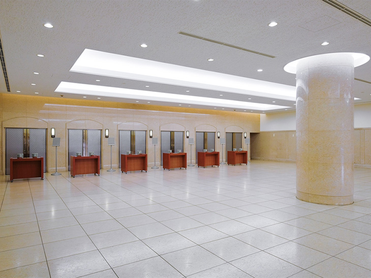 ゆとりある空間が安らぎのひとときを刻む落合斎場。東京メトロ東西線「落合駅」から徒歩5分。駅から近くアクセスのよい場所に位置します。お葬式、火葬までを一ヶ所で済ませることができる便利な総合斎場です。