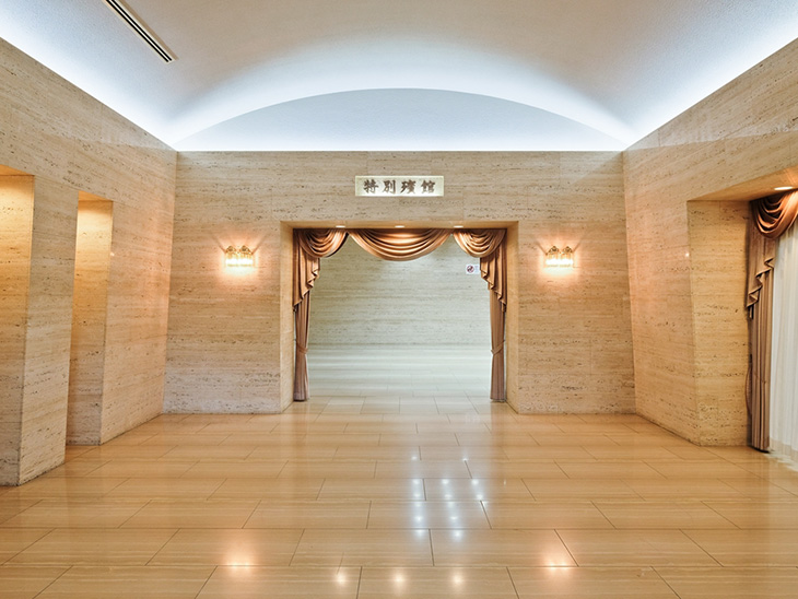 国内有数の設備規模と内容を誇る町屋斎場。最寄り駅から徒歩5分圏内で駅から近く、アクセスのよい場所に位置します。お葬式、火葬までを一ヶ所で済ませることができる便利な総合斎場です。