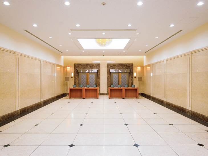 ゆとりある空間が安らぎのひとときを刻む落合斎場。東京メトロ東西線「落合駅」から徒歩5分。駅から近くアクセスのよい場所に位置します。お葬式、火葬までを一ヶ所で済ませることができる便利な総合斎場です。