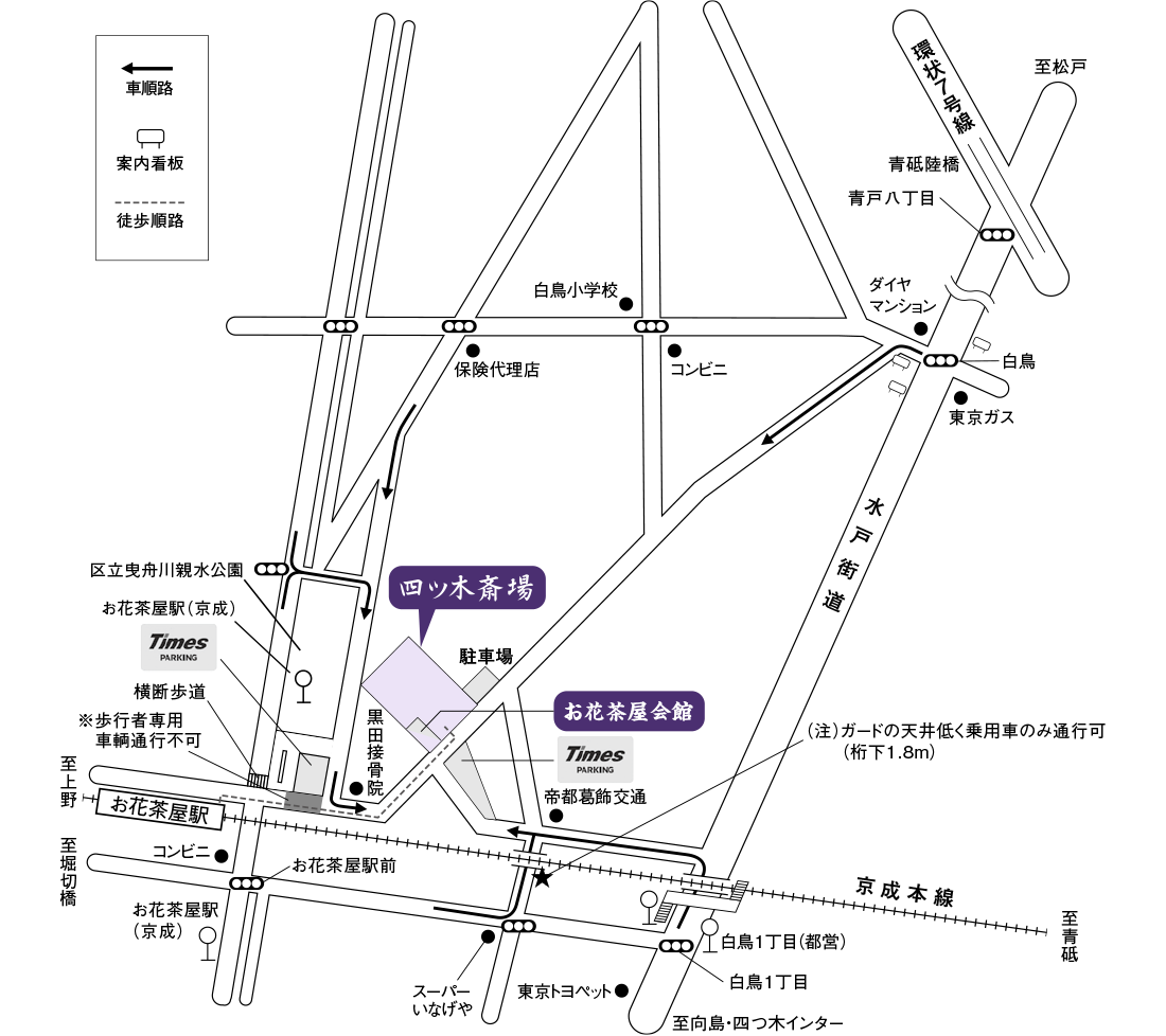 京成バス(亀有~葛飾区役所または奥戸車庫)お花茶屋下車 徒歩3分